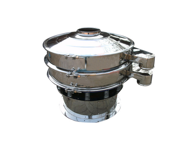 旋振篩(圓形振動篩)由立式振動電機作激振源,因為其上下端重錘安裝在發動軸兩側,使電機的旋轉運動轉變為垂直、水平、傾斜的三次元運動。  旋振篩產品特點:  設計精巧,耐用,適合任何粉類以及粘性液體的篩分。  操作簡單,換網方便,易于清洗?! 『Y網無阻塞,粉末無飛揚?! ‰s質以及粗料自動排出,并且可以與給料設備、輸送設備配套使用,處理量大,生產效率高?! 〕叽缧。澥】臻g,易于移動?! ∫子陴B護,可單層或多層使用。  篩網設計合理耐用,換網只需3-5分鐘。  篩網可達5層,篩分出6種不同顆粒大小的物料